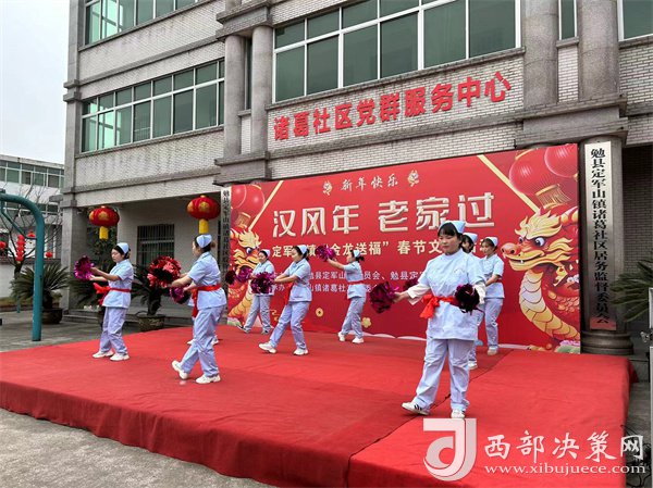 定軍山鎮(zhèn)黨委書記晏珣致辭,為轄區(qū)群眾送上佳節(jié)的問候和祝福。隨后,音樂快板《英雄出自咱楊家山》將一級戰(zhàn)斗英雄楊育才的英勇事跡再次傳唱,歌曲《兵心》道出了作為一名戰(zhàn)士保衛(wèi)祖國,思念家鄉(xiāng)的熱血赤誠之心。??道夏旯⒌淖o(hù)士們用他們輕快的舞蹈表達(dá)了對春節(jié)的盼望。