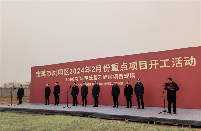 西部決策網(wǎng)訊(記者劉玉 韓宗憲 通訊員 孫艷萍)神州春暖山河秀,祥鳳騰飛日月新。2月18日,寶雞市鳳翔區(qū)2024年2月份年產(chǎn)2500噸甲硫基乙醛肟重點項目在鳳翔高新區(qū)長青工業(yè)園集中開工。鳳翔區(qū)委書記王宏強下達開工令,鳳翔區(qū)人大常委會主任魯立,鳳翔區(qū)政協(xié)主席蒲儀明等區(qū)級領(lǐng)導(dǎo)參加開工儀式,鳳翔高新管委會副主任趙紅軍和項目單位負責人分別作了表態(tài)發(fā)言。