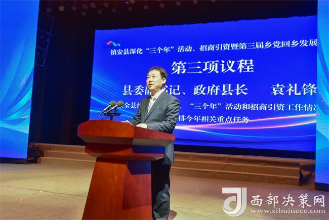 西部決策網(wǎng)訊 一年之計(jì)在于春。2月21日,鎮(zhèn)安縣召開深化“三個年”活動、招商引資暨第三屆鄉(xiāng)黨回鄉(xiāng)發(fā)展大會。深入貫徹落實(shí)省、市有關(guān)會議精神,總結(jié)2023年“三個年”活動和招商引資工作情況,邀請鄉(xiāng)黨回鄉(xiāng)共敘桑梓深情、共話合作大計(jì)、共謀發(fā)展新篇??h委書記馮朝勇出席并講話,縣人大常委會主任賈小民,縣委副書記、縣長袁禮鋒,縣政協(xié)主席楊清平出席。縣委副書記劉學(xué)智主持,縣委常委鄒宇、王德平、余紅松、張洋、陳小樂、焦榮煜等出席。