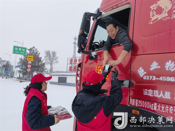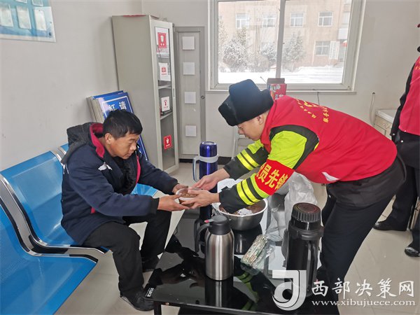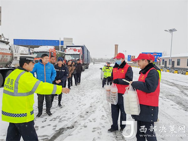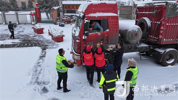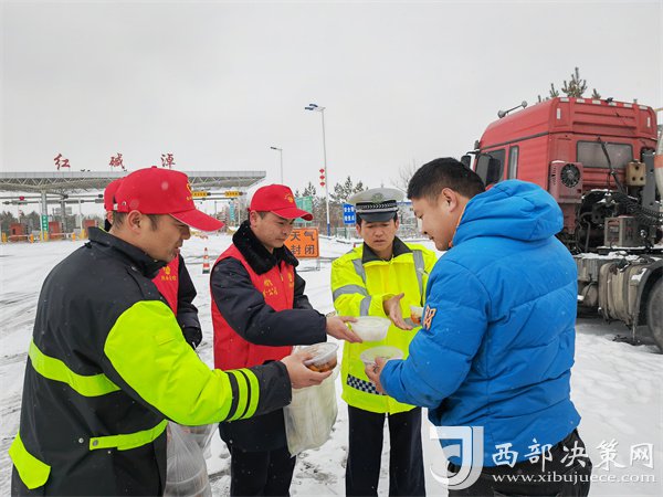 這有小米粥、炸油餅,雞蛋還熱乎著……”榆靖分公司志愿者暖心地喊著話。“行動是最好的破冰劑”,志愿者們?yōu)楦咚贉袈每退腿ナ澄?,頂風(fēng)冒雪分發(fā)給滯留在收費站的司乘人員。一件件穿梭在寒風(fēng)中的“紅馬甲”此刻成為了冬日里最美的“志愿紅”,讓群眾在寒意逼人的天氣里感受到了一份特別的溫暖。大家紛紛表示感謝,“熱粥、小菜、松軟的饅頭下肚,全身都熱乎了。”一名滯留司機(jī)真誠地感激道。