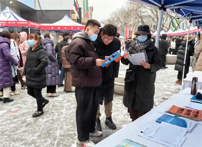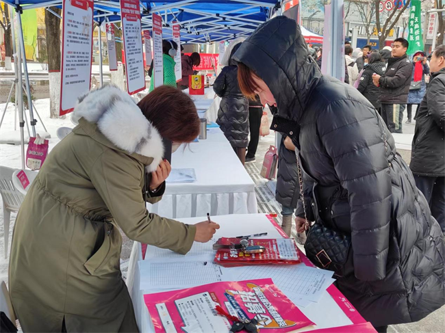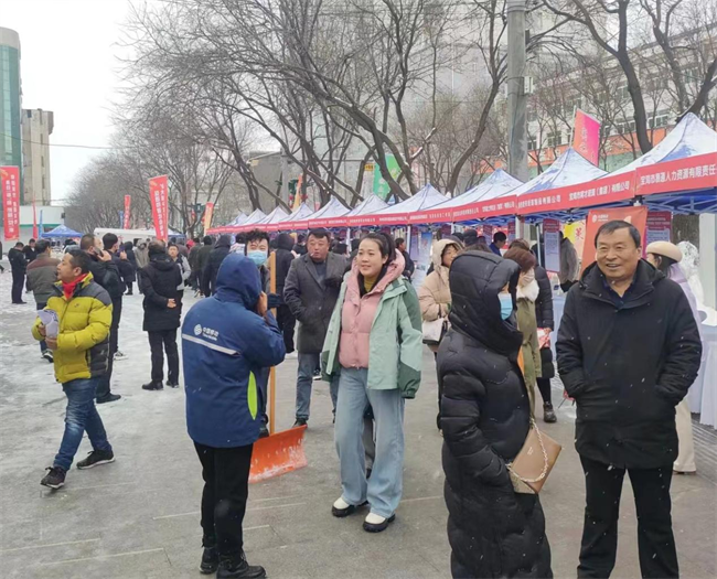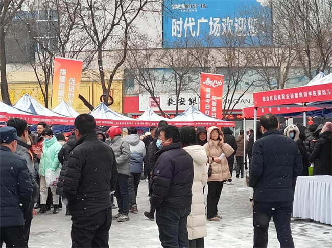 “你好,需要找工作嗎?”“可以了解一下我們企業(yè)”盡管大雪紛飛,天氣寒冷,但求職者們的熱情絲毫不減。求職者和招聘企業(yè)之間展開充分交流,招工、求職“供需兩旺”。不少求職者穿梭于各企業(yè)招聘展臺(tái)前,詢問工資待遇,填寫求職信息等。企業(yè)招聘人員熱情地向每一位求職者介紹企業(yè)崗位需求情況,講解薪資待遇、相關(guān)補(bǔ)貼政策等,現(xiàn)場(chǎng)人頭攢動(dòng),熱鬧非凡。