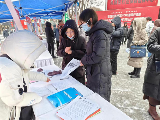 據(jù)了解,本次招聘會(huì)由鳳翔區(qū)人力資源和社會(huì)保障局、鳳翔區(qū)總工會(huì)、共青團(tuán)鳳翔區(qū)委、鳳翔區(qū)婦女聯(lián)合會(huì)、鳳翔區(qū)工業(yè)和信息化局、鳳翔區(qū)鄉(xiāng)村振興局、鳳翔區(qū)退役軍人事務(wù)局聯(lián)合主辦,鳳翔區(qū)勞動(dòng)就業(yè)服務(wù)中心、鳳翔區(qū)人才交流中心承辦。以“春風(fēng)送崗促就業(yè) 精準(zhǔn)服務(wù)助發(fā)展”為主題,線下招聘+線上招聘+直播帶崗齊發(fā)力,就是為鳳翔區(qū)域內(nèi)有用工需求的重點(diǎn)用人單位,特別是鳳翔白酒產(chǎn)業(yè)鏈企業(yè)、社區(qū)工廠、就業(yè)幫扶基地及省內(nèi)外有招聘需求的各類用人單位,返鄉(xiāng)農(nóng)民工、脫貧勞動(dòng)力、高校畢業(yè)生、退役軍人、殘疾人、就業(yè)困難人員等重點(diǎn)群體,搭建供需平臺(tái),實(shí)現(xiàn)市場(chǎng)化精準(zhǔn)對(duì)接,提供優(yōu)質(zhì)便捷的崗位對(duì)接服務(wù),促進(jìn)重點(diǎn)人群實(shí)現(xiàn)更高質(zhì)量和更加充分的就業(yè)。線上線下邀請(qǐng)了144戶用人企業(yè),提供包括餐飲、會(huì)計(jì)、財(cái)務(wù)管理、數(shù)控、銷售、家政服務(wù)等崗位9064個(gè),招聘會(huì)現(xiàn)場(chǎng)共吸引1000余人進(jìn)場(chǎng)咨詢,活動(dòng)現(xiàn)場(chǎng)共發(fā)放就業(yè)創(chuàng)業(yè)、職業(yè)技能培訓(xùn)、社會(huì)保險(xiǎn)、勞動(dòng)維權(quán)、創(chuàng)業(yè)擔(dān)保貸款等各類宣傳資料1000余份。線上當(dāng)日觀看直播瀏覽人次2000余人,投遞簡(jiǎn)歷268份,初步達(dá)成就業(yè)意向408人。
