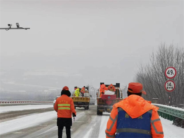 榆靖分公司在全線范圍內(nèi)采用機械為主,人工為輔的方法迅速開展除冰、除雪作業(yè),對結冰路段、坡道、彎道、匝道和橋面加大撒布融雪劑,尚未結冰路段進行預防性撒布融雪劑,增加人員、增加頻次,采取多輪除雪作業(yè)。并積極與高速交警部門對接,配合交警在重點路段實施交通管制,在主線分流車輛至就近收費站下高速,避免發(fā)生更多交通事故,安全路產(chǎn)巡查人員對事故、受困車輛進行及時救助。(陳儒智)