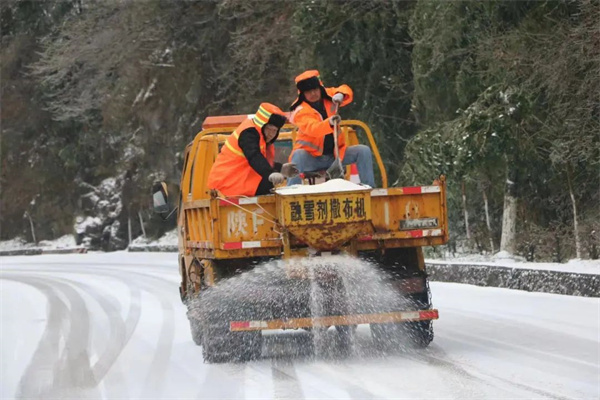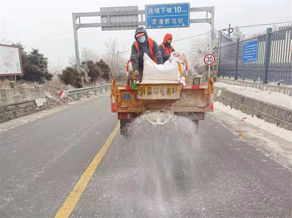 寧陜旬陽壩至平河梁路段因凍雨結冰,安康市公路局寧陜公路段全力防滑保暢,組織開展除冰工作。(吳家?。?/div>