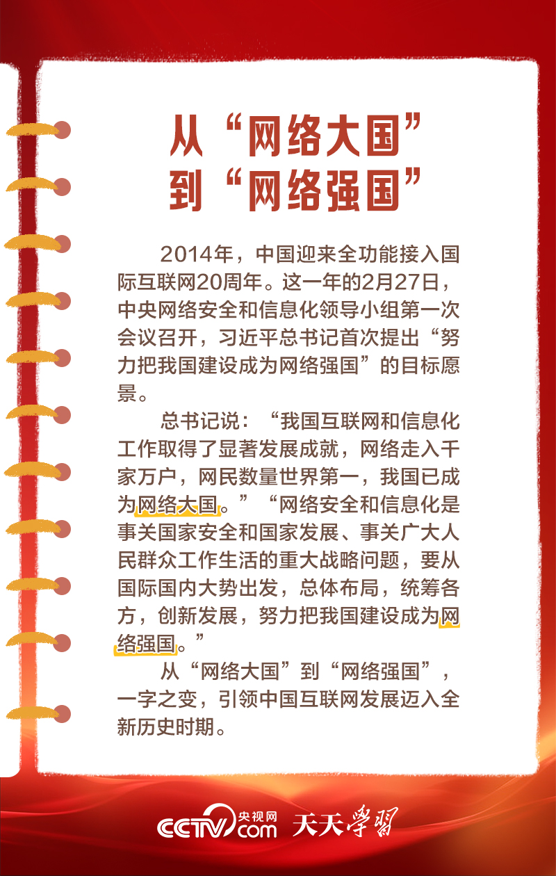 天天學習 黨的十八大以來,習近平總書記高度重視網(wǎng)絡(luò)強國建設(shè),在網(wǎng)絡(luò)強國建設(shè)實踐基礎(chǔ)上,提出了一系列新思想、新觀點、新論斷,形成了關(guān)于網(wǎng)絡(luò)強國的重要思想。在這一重要思想引領(lǐng)下,我國互聯(lián)網(wǎng)發(fā)展進入全新時代,網(wǎng)絡(luò)強國藍圖徐徐鋪展。
