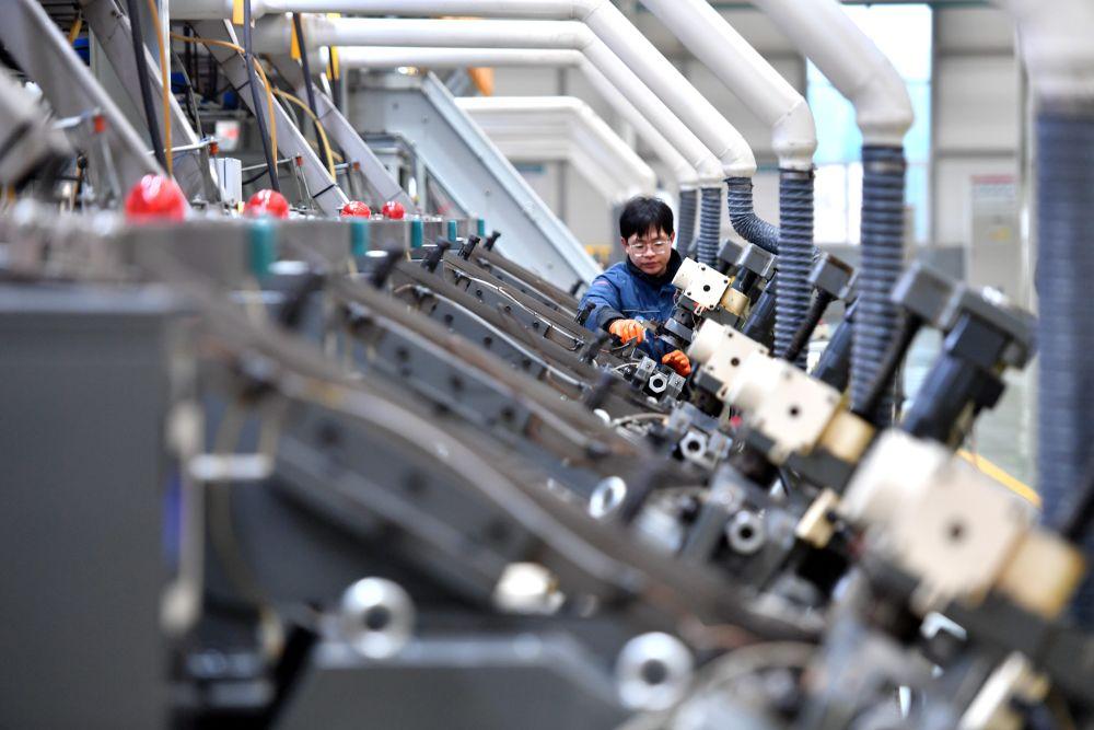 △ 2024年2月20日,在河北邯鄲市永年區(qū)一家緊固件生產(chǎn)企業(yè),工人在數(shù)字化智能生產(chǎn)車間內(nèi)工作。