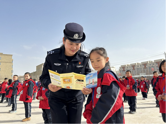 2月26日,開學(xué)第一天,新疆和碩縣公安局組織民警到轄區(qū)各中小學(xué)開展“開學(xué)第一課”普法教育活動,將法律法規(guī)和安全防范等知識送到學(xué)生們心中。