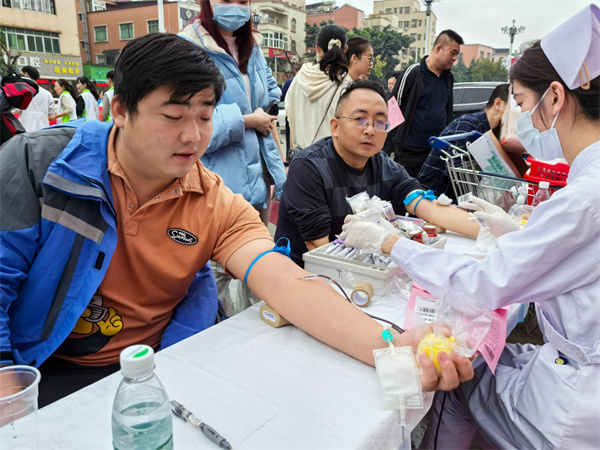 在廣州市白云區(qū)第二人民醫(yī)院無(wú)償獻(xiàn)血活動(dòng)現(xiàn)場(chǎng),志愿者們?cè)卺t(yī)務(wù)人員的指引下有序排隊(duì),填寫登記表、測(cè)量血壓、抽血化驗(yàn)、完成采血等一系列程序,隨著一股股鮮血緩緩流入血袋,志愿者們濃濃的愛(ài)心也傳遞了出去。