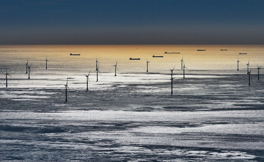 這是2023年12月22日拍攝的河北省唐山市海港經(jīng)濟開發(fā)區(qū)轄區(qū)內(nèi)的海上風(fēng)電場(無人機照片)。