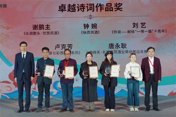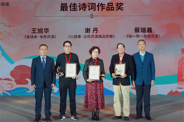 西部決策網(wǎng)訊(記者劉玉韓宗憲通訊員張?zhí)炝Ⅵ梦姆澹┰娋莆幕?,溫暖世界?月7日,以“詩酒飄香、悅享世界”為主題的“一帶一路”西鳳酒詩詞大會頒獎典禮在西安隆重舉行。中央電視臺原臺長,光明日報社原總編輯,第十屆中國文聯(lián)副主席胡占凡,著名作家、中國作家協(xié)會社聯(lián)部主任李曉東,中華詩詞學會常務副會長林峰,央視百家講壇主講人、鄭州大學文學院教授王士祥,中華詩詞學會評論部副主任,火箭軍工程大學原副校長杭中華,央視《中國詩詞大會》學術總負責人李定廣,中華詩詞學會顧問,陜西省詩詞學會會長孟建國,著名酒文化專家、山東社會科學院歷史所研究員王賽時,西北大學歷史學院副教授、中國文明史研究院研究員路中康。網(wǎng)易傳媒副總裁李淼,網(wǎng)易傳媒華北銷售中心副總經理于洋。西鳳集團公司黨委書記、董事長、股份公司董事長張正,西鳳股份公司總經理張周虎,西鳳集團公司黨委副書記、工會主席郭拴新,西鳳股份公司副總經理周艷花、高亞蘭,西鳳酒股份有限公司總文化顧問高洪濤以及《人民日報》、新華社、新浪、網(wǎng)易、鳳凰網(wǎng)、《華爾街日報》、英國衛(wèi)報、中國經營報、每日經濟新聞、北京日報、陜西日報等50多家媒體代表,詩詞愛好者參加會議。新華直播、網(wǎng)易新聞、西鳳股份公眾號、抖音平臺對大會進行了現(xiàn)場直播。