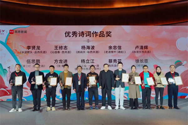 會上,王士祥、李曉東分別作了題為《詩詞山河—古典詩詞與酒》《當代生活與傳統(tǒng)詩詞》的主題演講;網(wǎng)易文化高級主編章劍鋒公布比賽情況,與會領導為獲獎詩詞作品頒獎;獲獎代表蔡瑞義、鐘婉、伍思鵬分別作了發(fā)言;獲獎作品進行了現(xiàn)場表演展示。