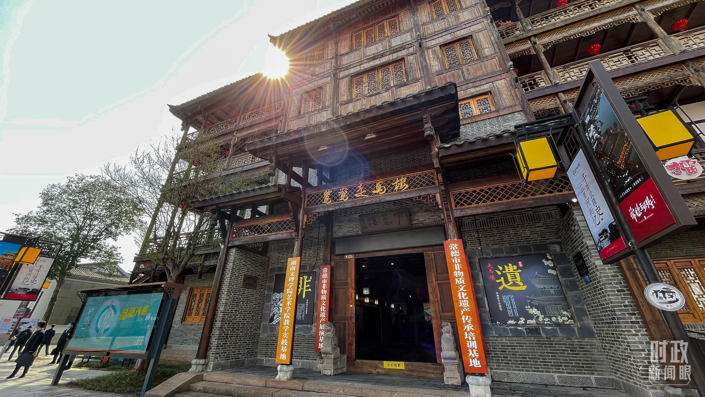 △常德河街鴛鴦走馬樓內(nèi)的常德高腔、常德木雕等非遺展示。(總臺(tái)央視記者郭鴻、央廣記者潘毅拍攝)