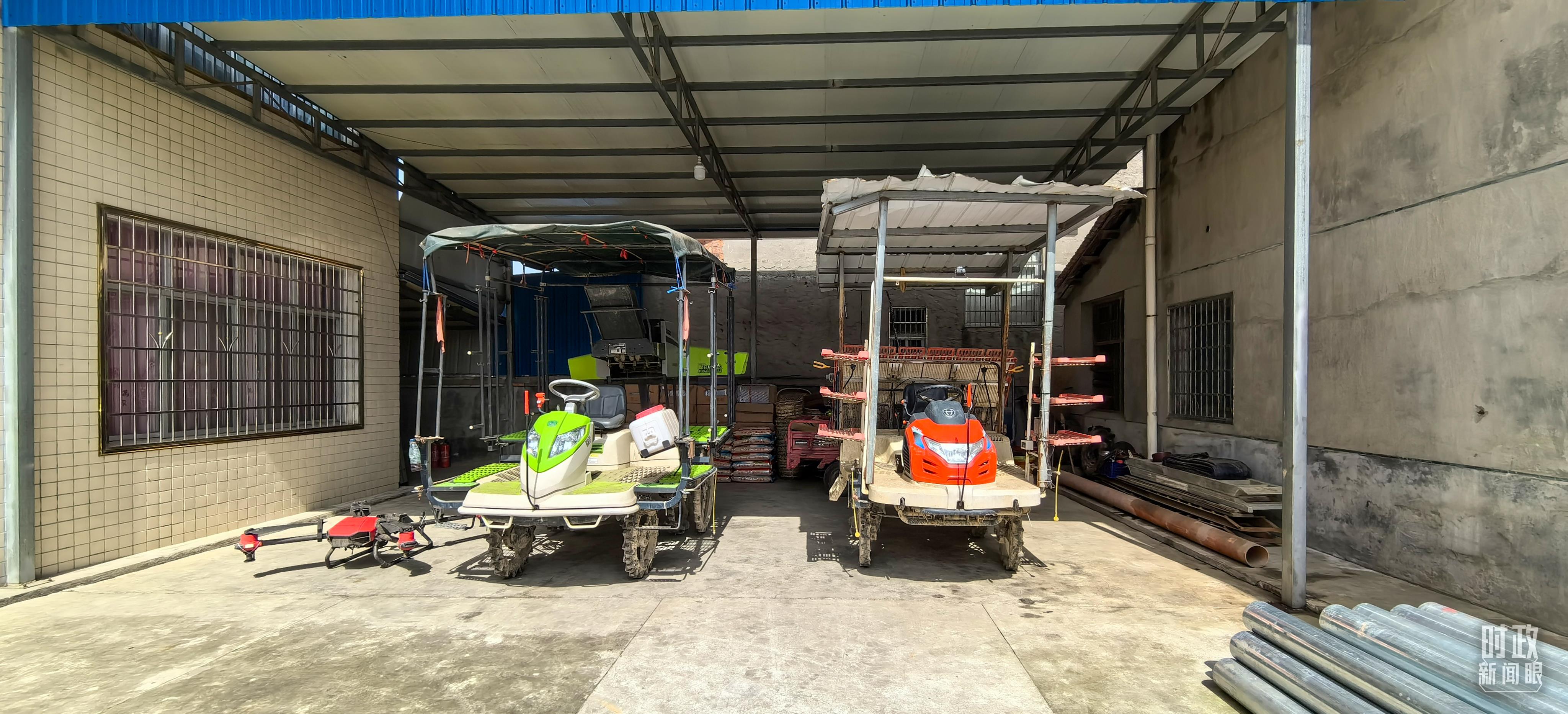△港中坪村種糧大戶家里的農(nóng)機(jī)具。(總臺(tái)央視記者馬超拍攝)