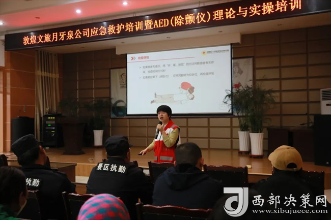 西部決策網訊 (記者帥華鋒 通訊員 田雅杰)保障游客的生命安全是景區(qū)一線從業(yè)者的責任與義務。3月21日下午,由敦煌市衛(wèi)健局、敦煌紅十字會、敦煌市醫(yī)院聯合開展的“博愛敦煌·“救”在身邊”應急救援培訓,走進鳴沙山月牙泉景區(qū)。旨在提升景區(qū)全體一線人員的急救意識與變通能力,搶抓黃金4分鐘,挽救心臟驟?;颊叩膶氋F生命。