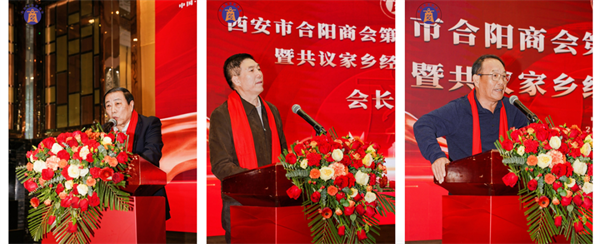 秦商總會(huì)執(zhí)行會(huì)長(zhǎng)劉阿津先生、西安市合陽商會(huì)名譽(yù)會(huì)長(zhǎng)喬軍先生、北京鴻基世業(yè)集團(tuán)董事張志鴻先生作為來賓代表致辭。對(duì)新當(dāng)選的商會(huì)領(lǐng)導(dǎo)班子成員表示祝賀,未來大家會(huì)一如既往地?zé)釔坳P(guān)心合陽,宣傳支持合陽,共同為建設(shè)美好家鄉(xiāng)貢獻(xiàn)力量。希望商會(huì)和各位鄉(xiāng)友把個(gè)人發(fā)展與家鄉(xiāng)發(fā)展緊密結(jié)合起來,帶領(lǐng)大家積極走出去,把“先進(jìn)技術(shù)”帶回來、把“優(yōu)質(zhì)項(xiàng)目”落下來,為合陽的高質(zhì)量發(fā)展賦能助力。