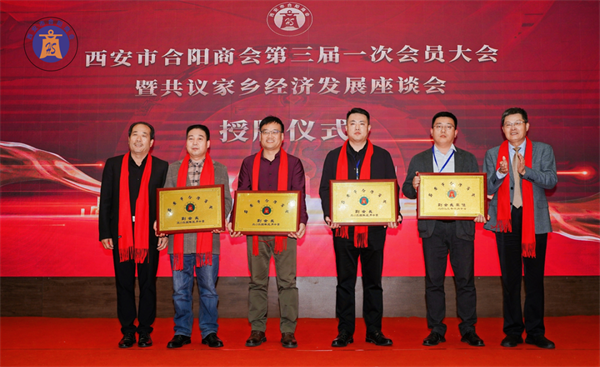 西安市合陽商會(huì)會(huì)長(zhǎng)賈申龍先生和監(jiān)事長(zhǎng)劉自力先生為副會(huì)長(zhǎng)單位授牌。
