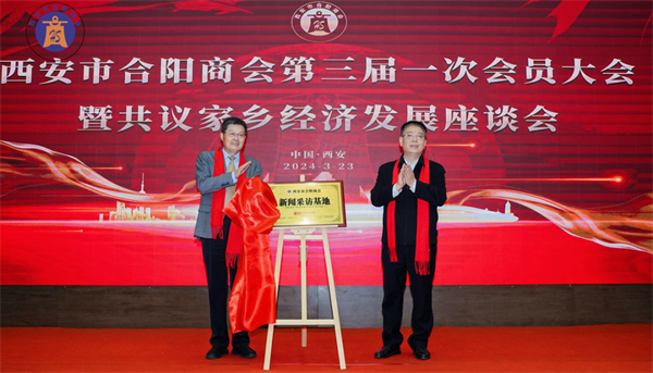 西安市合陽商會(huì)會(huì)長(zhǎng)賈申龍先生與中國(guó)商業(yè)聯(lián)合會(huì)副秘書長(zhǎng)朱清平先生共同為西安市合陽商會(huì)新聞采訪基地揭牌。