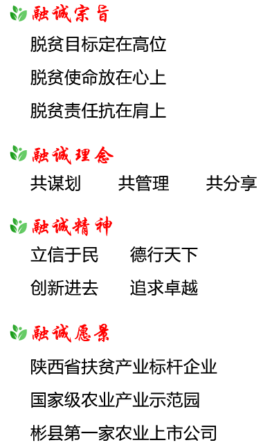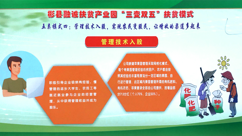 彬州融誠集團公司按照“企業(yè)主導(dǎo)、政府搭臺、群眾參與、社會共建”的思路,圍繞主導(dǎo)產(chǎn)業(yè),緊盯市場需求和脫貧政策動向, 在外出考察學(xué)習(xí)的基礎(chǔ)上,借鑒貴州省六盤水市“三變”改革的成功經(jīng)驗,以“資源變資產(chǎn)、資金變股金、農(nóng)民變股東”三變改革為基礎(chǔ), 探索總結(jié)出了符合融誠實際的“三變雙五”新模式。